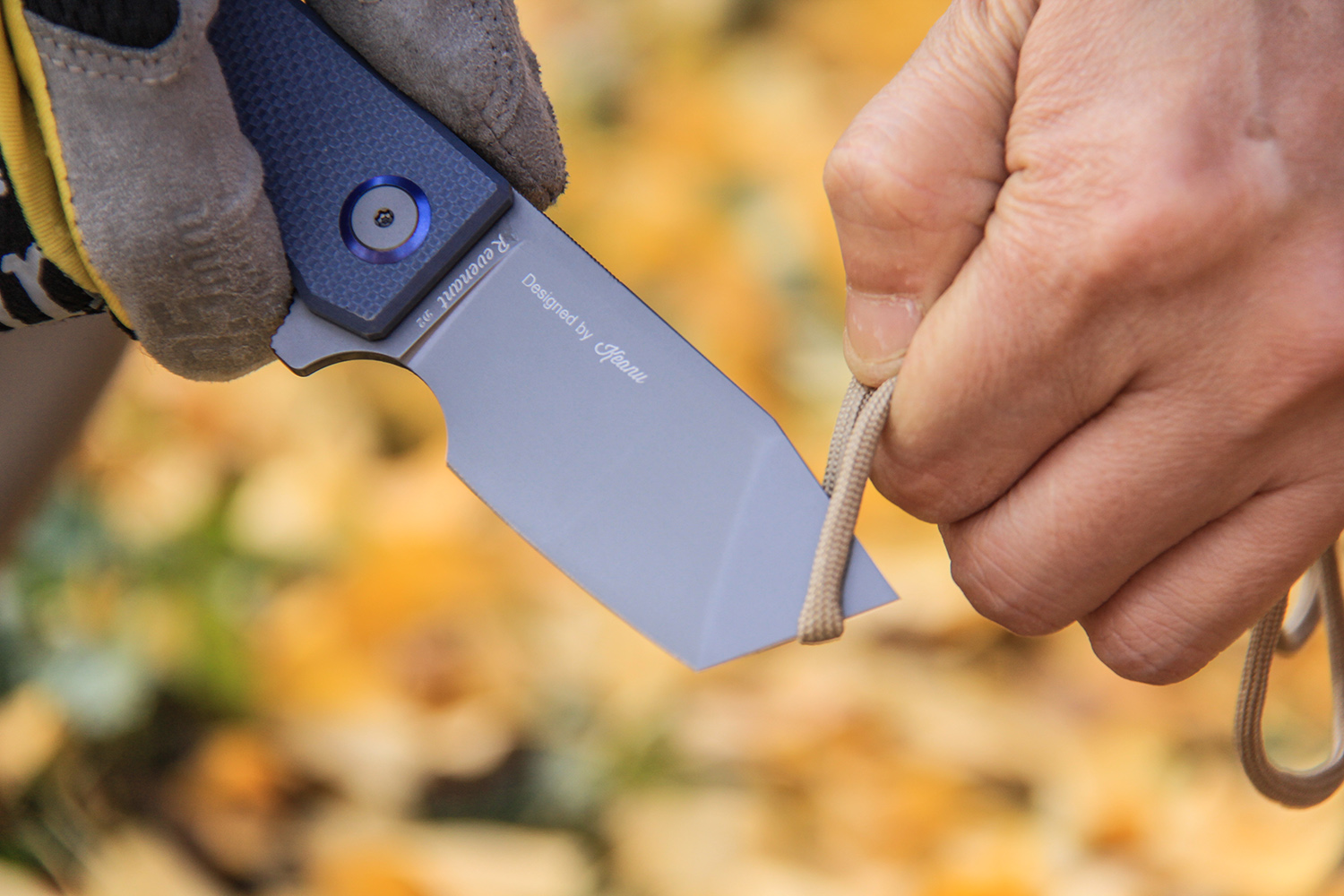 与G10背骨的防滑槽相对应,归来者在刀身后部也设计了更为细密的防滑槽,大拇指指腹刚好抵住这里,便于使用时发力。