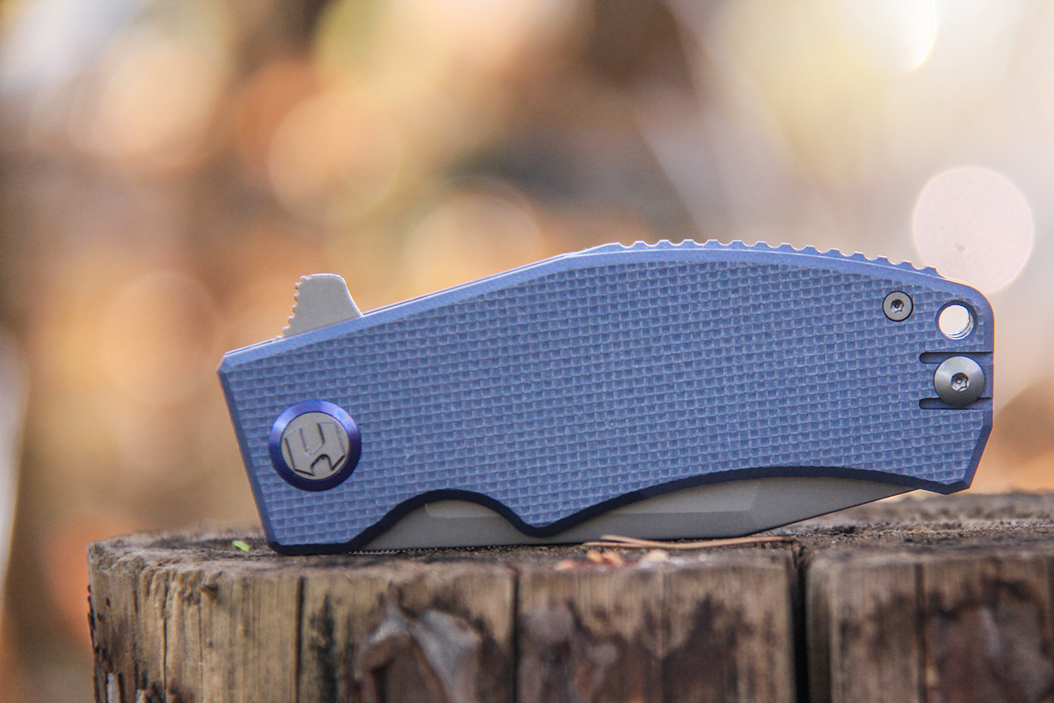 归来者的手柄采用G10玻纤制作,玻纤是机械性能良好的材料,强度大,抗撕裂、抗剪切、耐冲击、耐腐蚀,而且结构紧致,不易磨损。