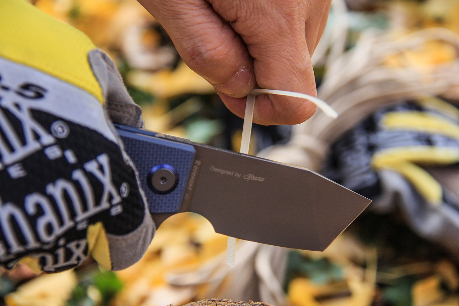切一拉得扎带也很轻松,而且我发现用归来者的斜线推切更方便,用力向前一顶,扎带应力而断。