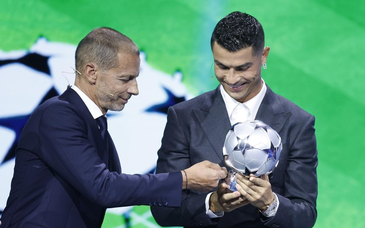 紧接着,一个更加令人激动的时刻到来了。葡萄牙巨星C罗,这位在足球世界中如日中天的传奇人物,被请上了舞台中央。他的步伐矫健而自信,仿佛每一步都承载着无尽的力量。他的眼神中闪烁着对胜利的渴望和对足球的热爱。