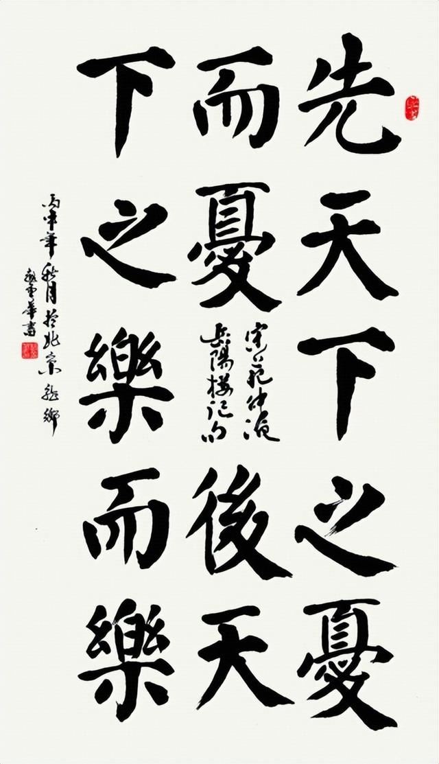 “先天下之忧而忧,后天下之乐而乐。”—— 范仲淹《岳阳楼记》在天下人忧愁之前先忧愁,在天下人快乐之后才快乐。
