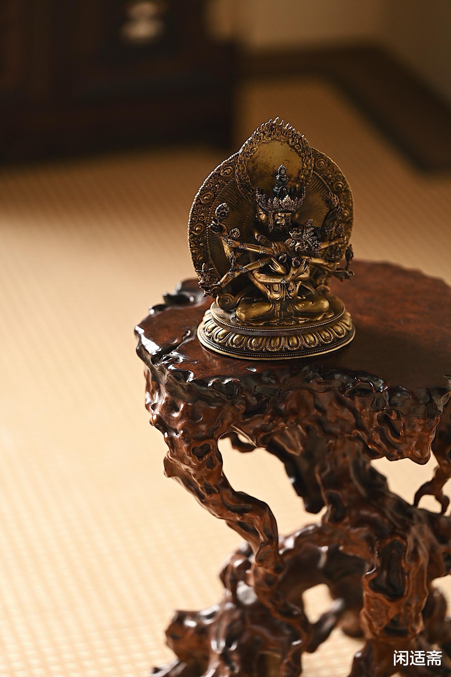 这件 “盘根” 香几,形制古朴,是对传统仿古工艺的细腻呈现。它完美复刻了古代香几的经典韵味,却又融入了现代工匠对细节的极致追求。摆放在文房雅室之中,它不仅仅是一件承载香炉的家具,更是一件空间美学器物。当香炉袅袅升起青烟,萦绕在香几周围,与室内的书画、古籍相互映衬,瞬间营造出一种静谧、高雅的氛围,让身处其中之人,仿佛穿越千年,沉浸在古典文化的深厚底蕴之中。无论是作为实用器具,还是作为艺术摆件,这款黄杨木 x 缅花 “盘根” 香几都无疑是文房雅室中的珍品,为空间注入独特的文化魅力。