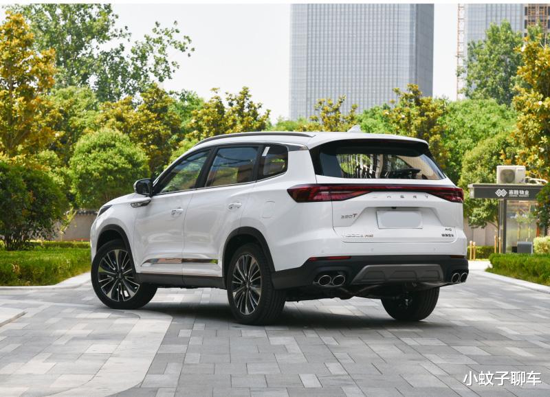 最后来说说外观和内饰吧,和瑞虎8 PLUS的豪华、精致相比,瑞虎8 PRO主打的则是年轻、科技,整体的外观风格非常运动化,大嘴进气格栅搭配造型犀利的led灯组,让前脸看上去非常有进攻性,侧面和尾部的轮廓则比较敦实厚重,线条充满肌肉与力量感,19英寸的双色多幅式轮圈视觉比例协调,贯穿式尾灯点亮之后也很有辨识度,并且底部配备了双边共四出排气,进一步增添了整台车的运动气质。