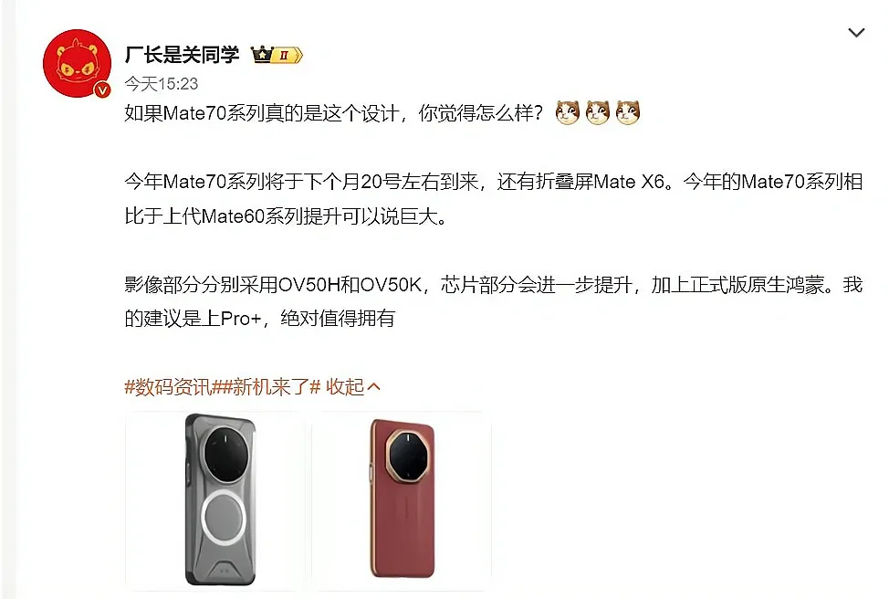 网友也展开了大胆猜测,华为Mate70系列很可能在11月18日(周一)或11月19日(周二)发布。