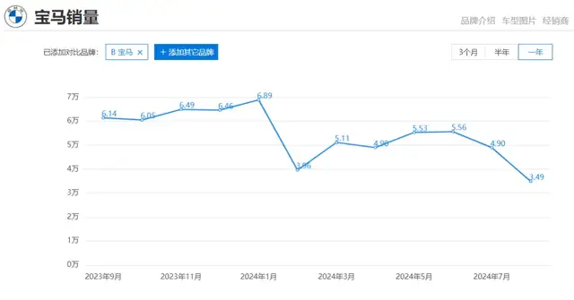 以宝马为例,在今年7月宣布退出价格战后,其销量出现了较为明显的下滑趋势。(PS:宝马2024年6月份销量5.6万辆,7月份销量4.9万辆,8月份销量3.5万辆)