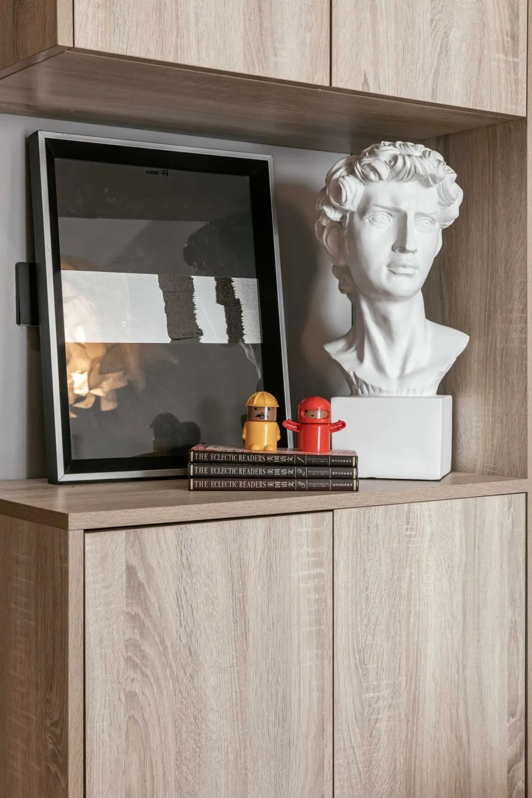 去掉电视,将客厅与书房进行融合,把客厅的更多空间释放给未来即将发生的场景,譬如:居家办公,父子同学,自我精进的学习与思考等等。