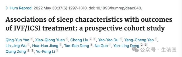 [5]Associations of sleep characteristics with outcomes of IVF/ICSI treatment: a prospective cohort study. Hum Reprod. 2022 May 30;37(6):1297-1310. doi: 10.1093/humrep/deac040.