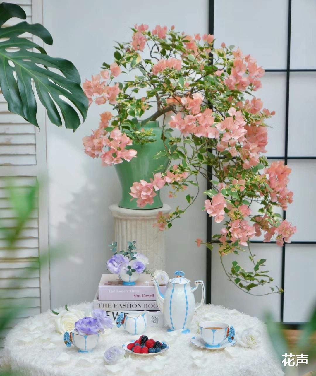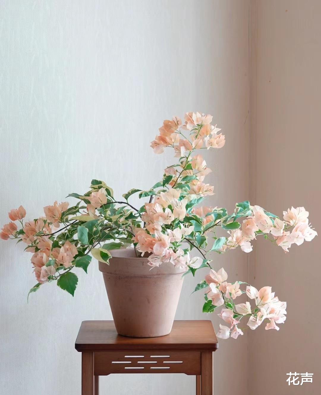 马斯三角梅分枝性很好,枝条比较软,很适合打造成垂吊形状或拱桥形,它的枝条长势快、耐修剪,造型很容易,是打造盆景三角梅的良材。