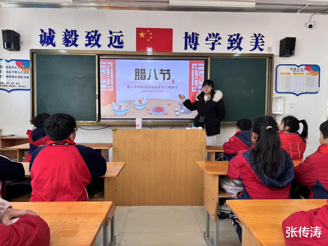 该校利用校园广播,举行班级主题队会,通过教师讲解、学生讲故事、图片和视频展示、中午喝腊八粥来帮助孩子们了解腊八节的来历和习俗,体验浓浓的传统文化。