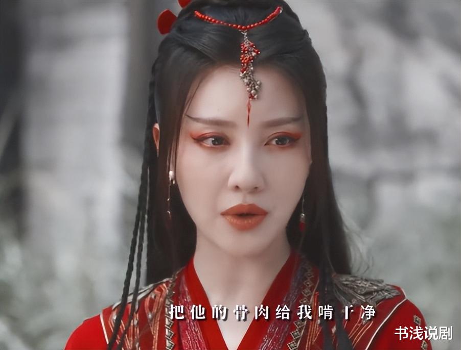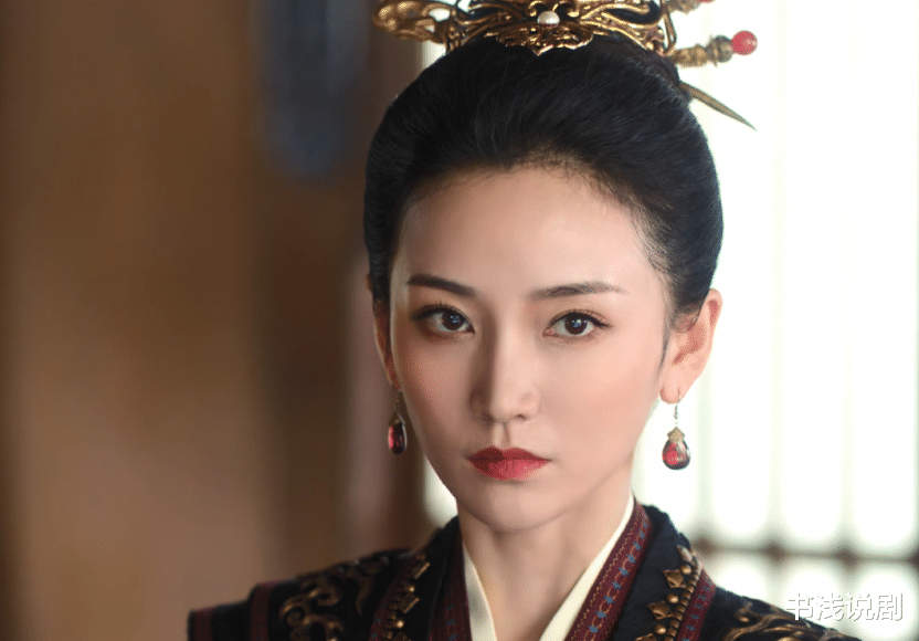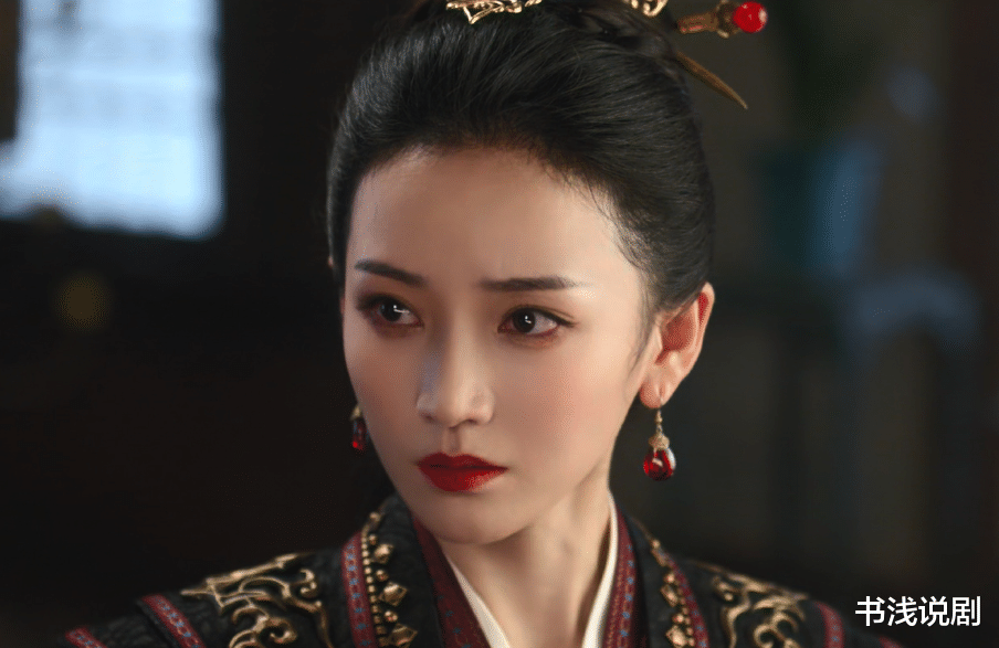 全部束起来的头发,深色的服化道,凌厉的神情,画面中的玉红烛是坏女人形象。