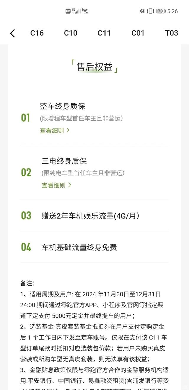 最后,在售后方面,像首任非营运车主终身质保、免费三电质保、2年的免费车机娱乐流量、终身的车机基础流量,零跑汽车也都是赠送到位,可以说现在入手零跑C11就是最好的时候。