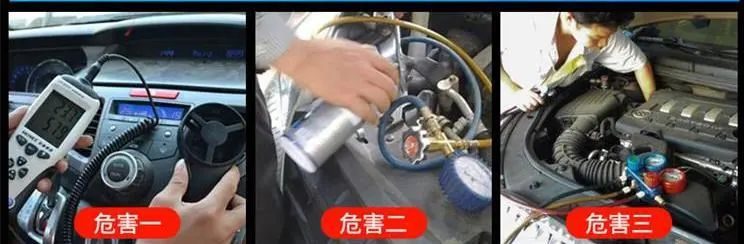 使用R-12雪种冒牌R-134a而加注于冷却系统中,由于F-12雪种与R-134a雪种冷冻油不相溶,这样会使冷气泵润滑不良而卡死,失去制冷功能。