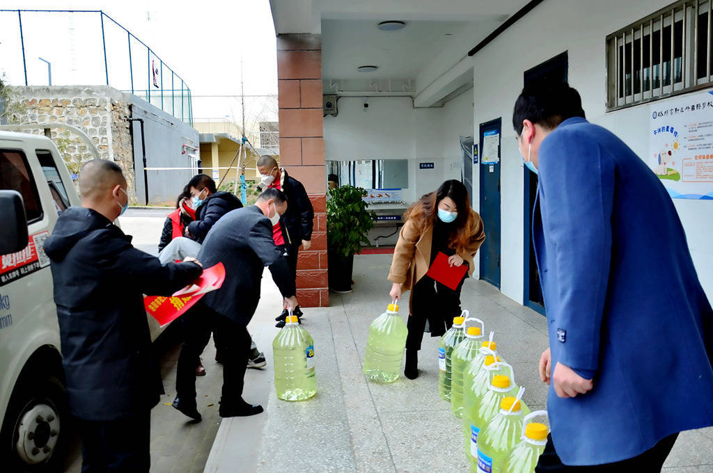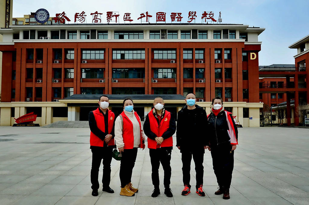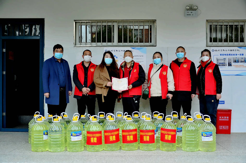 第二站,高新区外国语学校,送去消毒液为学校消杀,给孩子们一个温馨的学习环境,做坚强的后盾。