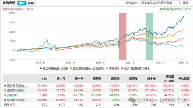 我把嘉实美国成长和罗素1000、罗素1000成长叠加,这个感受就很明显了。