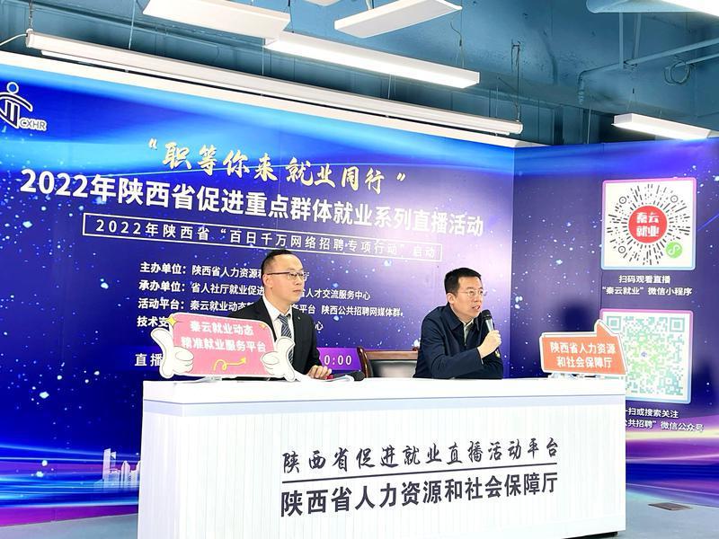 这是“职等你来 就业同行”2022年陕西省促进重点群体就业直播活动的现场,求职者可通过“秦云就业”微信小程序等平台进入直播间,并同步投递简历。