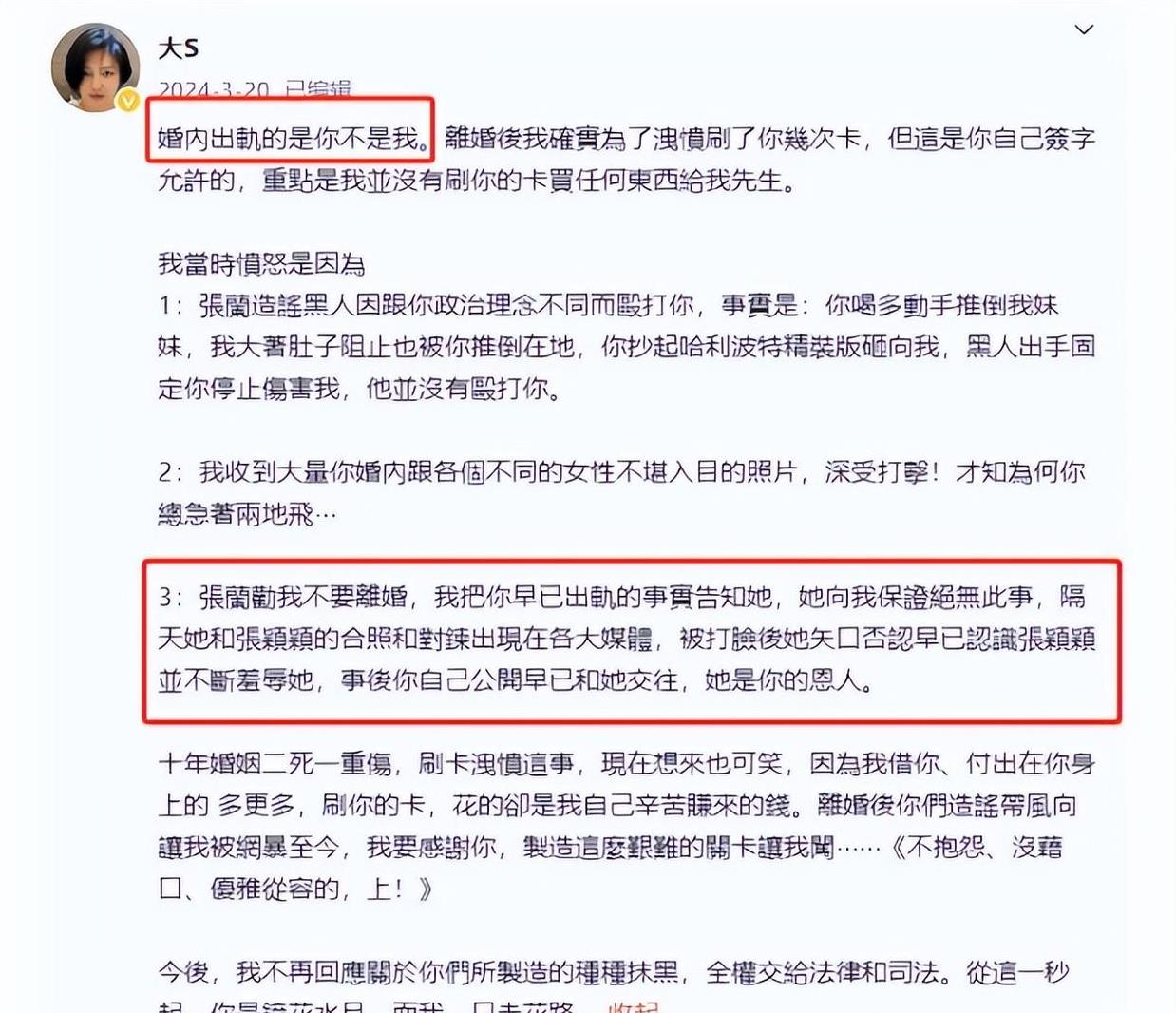 在大S看来,这段婚姻里的“负心人”就是汪小菲啊。两个人各自说自己的道理,网友们都被搞晕了,不知道该信谁。