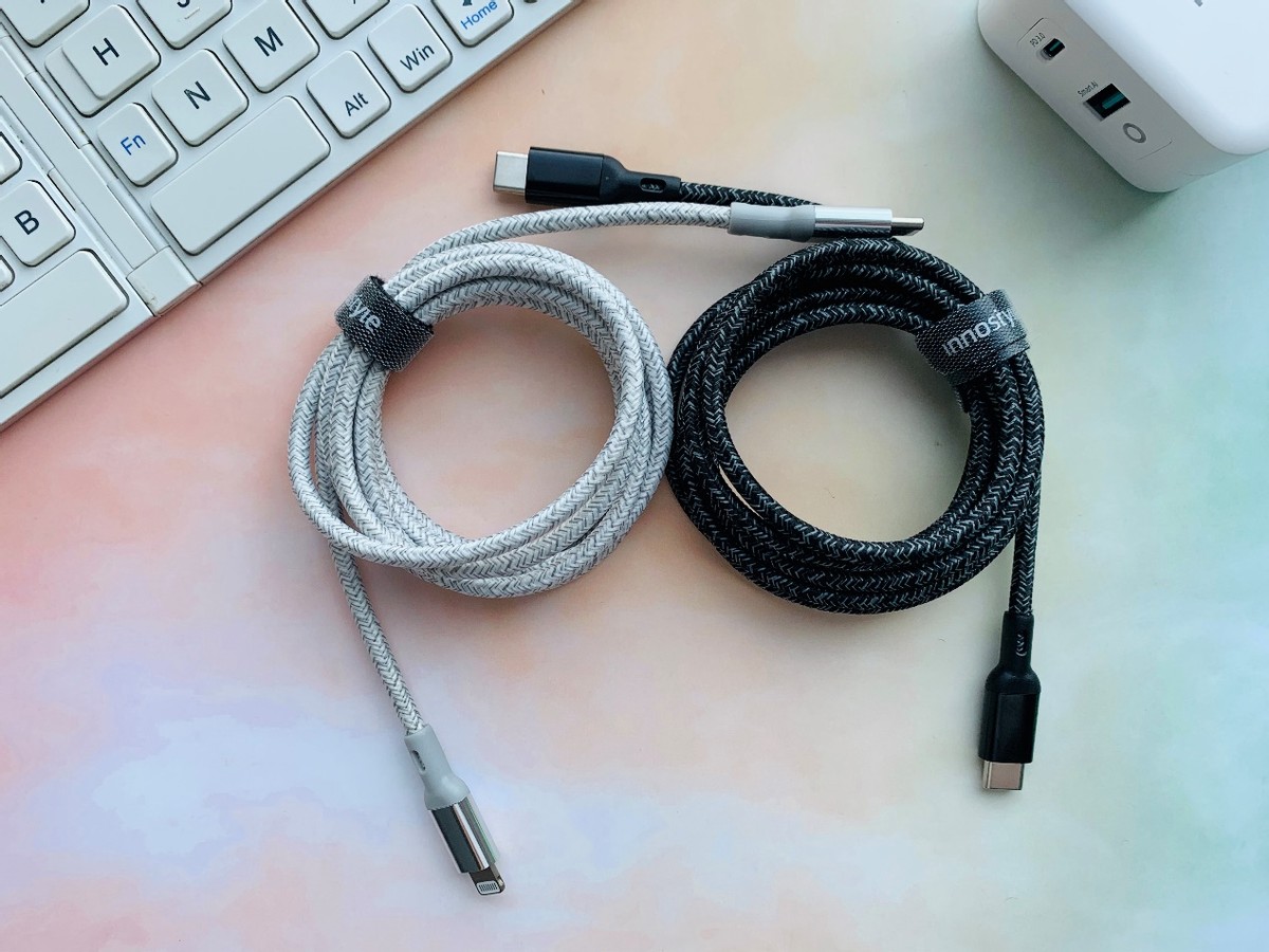 两根数据线则是刚好满足各种日常需求,双C线主要要是给电脑、平板啊之类的充电,毕竟家里C口充电设备也不少,MFI认证的线则是给手机用,苹果认证不用担心兼容问题,而且编织线的设计比较耐用,官宣内置进口杜邦凯芙拉防弹丝,采用20000次,日常收纳弯折不用太担心破皮问题,1.5m的线长则能满足任何日常使用场景,两根线还可以当数据线使用,传输速度都达到了480Mbps。
