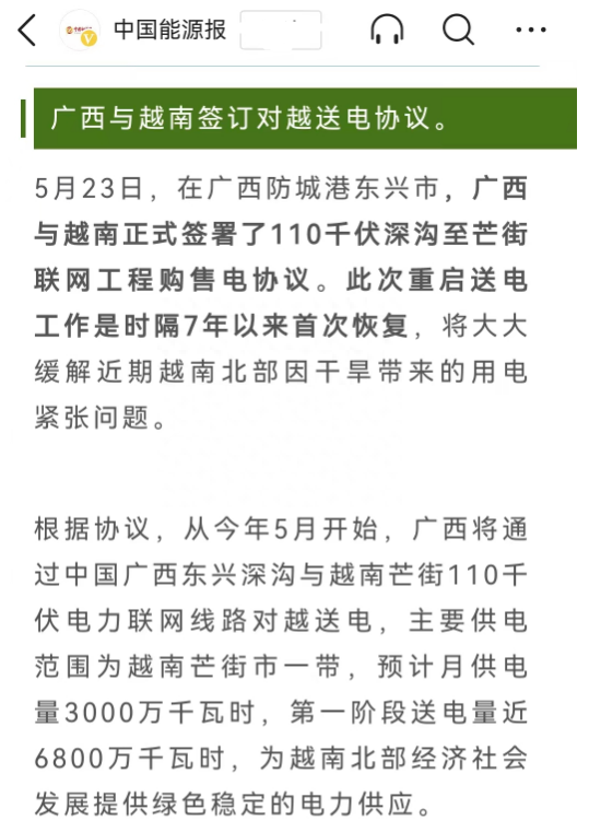 原来,据说此次出口到越南的电价,每千瓦时仅为0.47元。