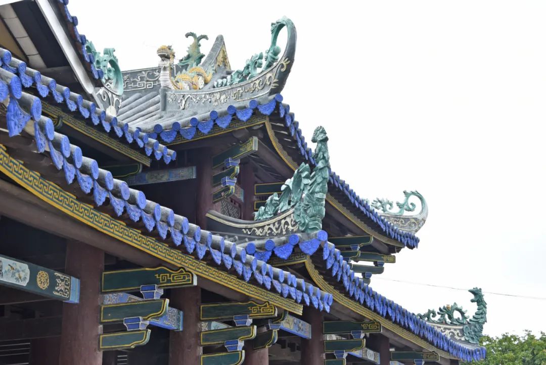 大士阁虽然只是一座简单的阁楼,但所有屋脊、飞檐和封檐板等处,均雕塑或绘有栩栩如生的神话人物、麟龙鹤凤、飞禽走兽和奇花异草。