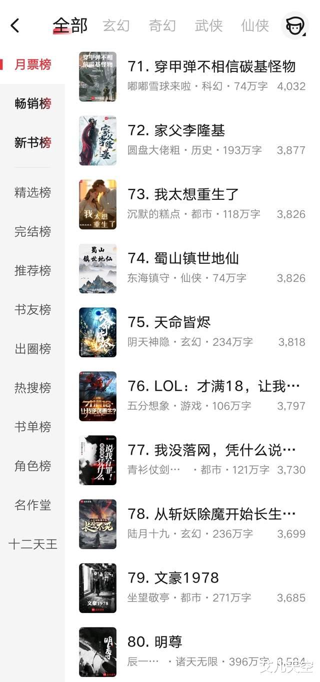 那么以上就是这周起点月票榜一些作品的排名情况,简单记录一下,新规则下确实不太热闹。