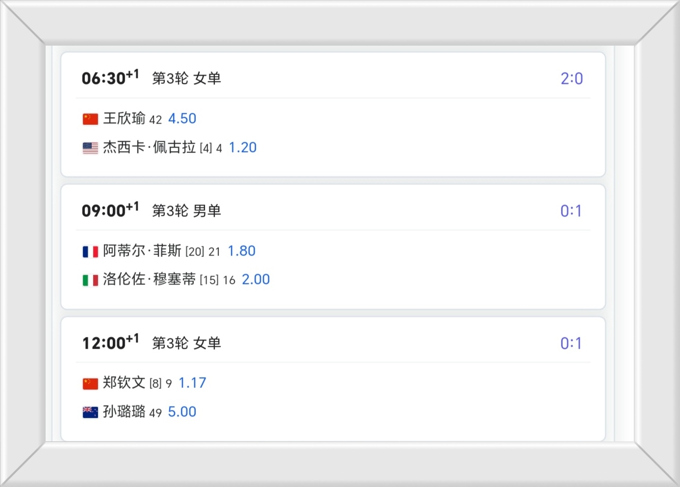 单打赛场第三轮比赛已经开启,中国两大金花、王欣瑜和郑钦文都将会向16强发起冲击。