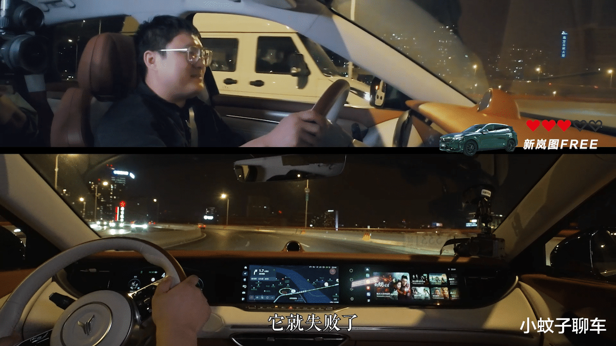 因为每天都得从博览中心回岳阳这边,所以我敢说对这测试里的内环高架和南浦大桥内侧的这魔鬼大圈,我肯定是比这两位博主熟得多。说实话,能在这复杂到离谱的高架上用自动驾驶我就已经有些惊讶了,没想到的是这两车感觉都还能适应,只是吧,总看视频说能力强但又不稳定的特斯拉,确实是有这毛病,Model Y一会儿又错过了进匝道、一会儿又把开车的博主吓得扶着方向盘一哆嗦,各种失误,5次之后就结束了测试。而这开新岚图FREE的,除了一次被别车和一次车速太快用手回正了下方向盘外,其它大部分情况都还挺稳健的,特别是我看这车每次要进出匝道之前,提前1公里多就在变道了,而且连上京沪高速的收费站也能识别得出来,这实用性是比我印象中的智能驾驶高不少。
