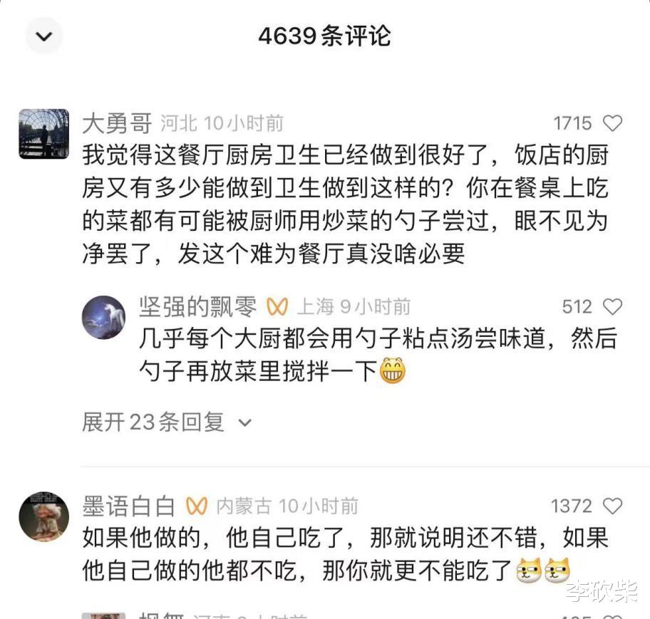 甚至,还有不少网友看了反而说:“这后厨太干净了,尝尝熟不熟也是正常事,何况人家也没有用嘴碰到筷子。”