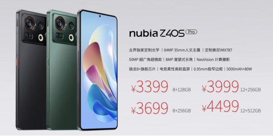 即日起,努比亚Z40S Pro将在中兴商城、京东、天猫、苏宁等平台开启预售,并于7月26日全渠道正式开售。努比亚Z40S Pro 5000mAh大电池版,8GB+ 128G售价3399元,8G+256G售价3699元,12G +256G售价3999元,12G +512G售价4499元。120W超级快充版12G + 256G售价4299元,18G+ 1T售价6699元。灵笼限定版12G + 256G售价4699元。生态产品也将于近日开售,氘锋能量块65W三口氮化镓售价148元,氘锋能量块65W透明款售价158元,氘锋能量块100W氮化镓售价259元。