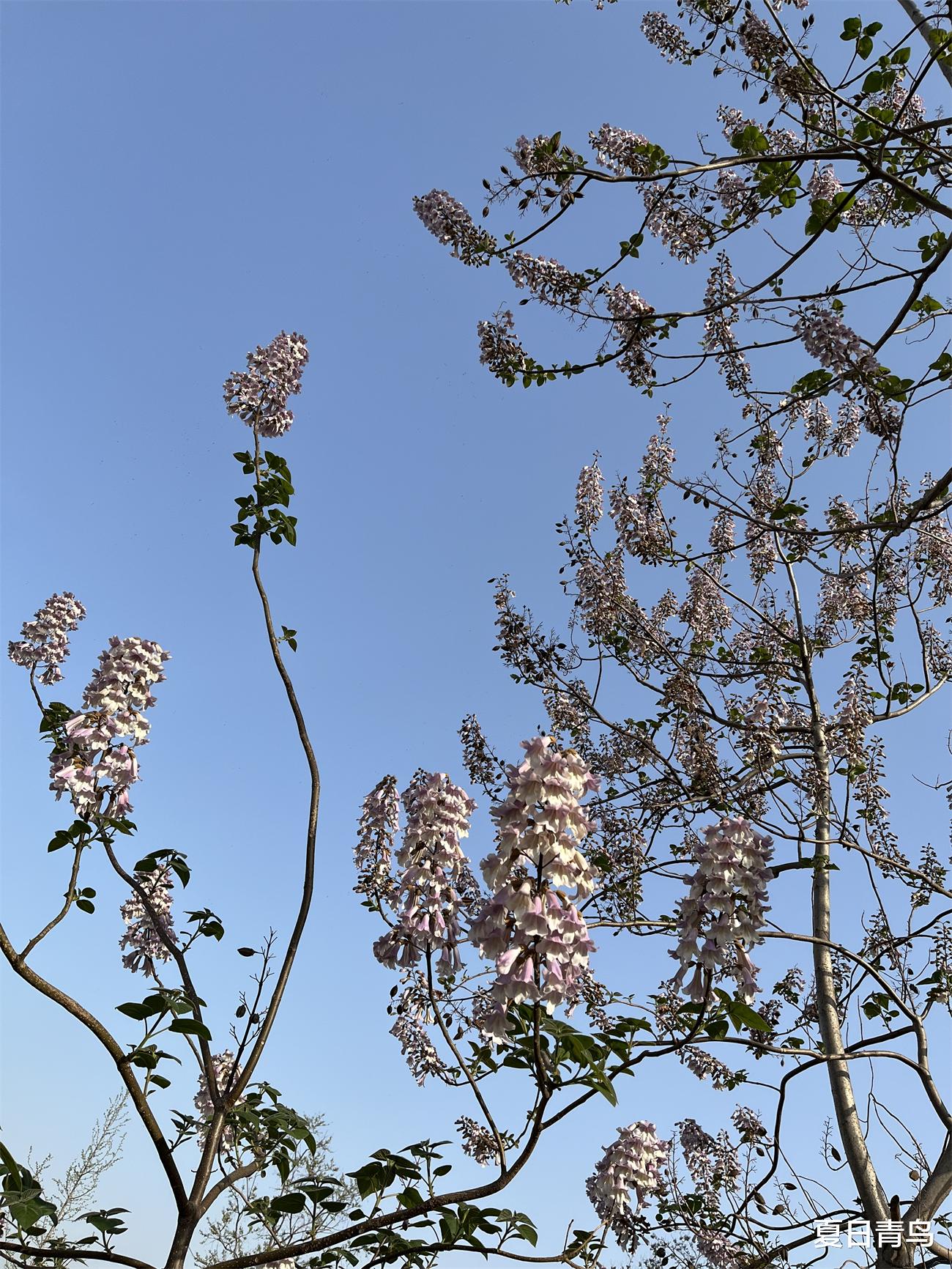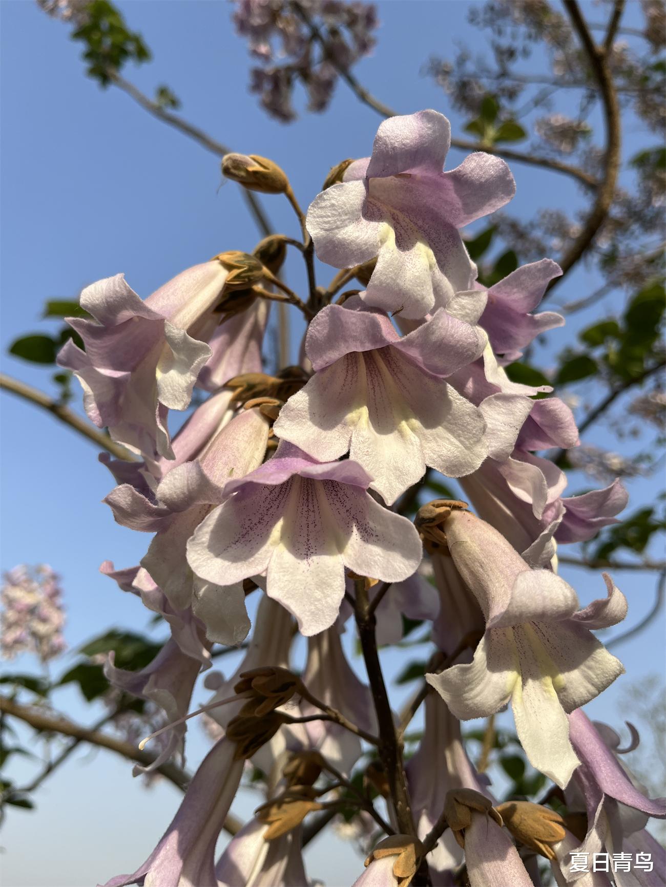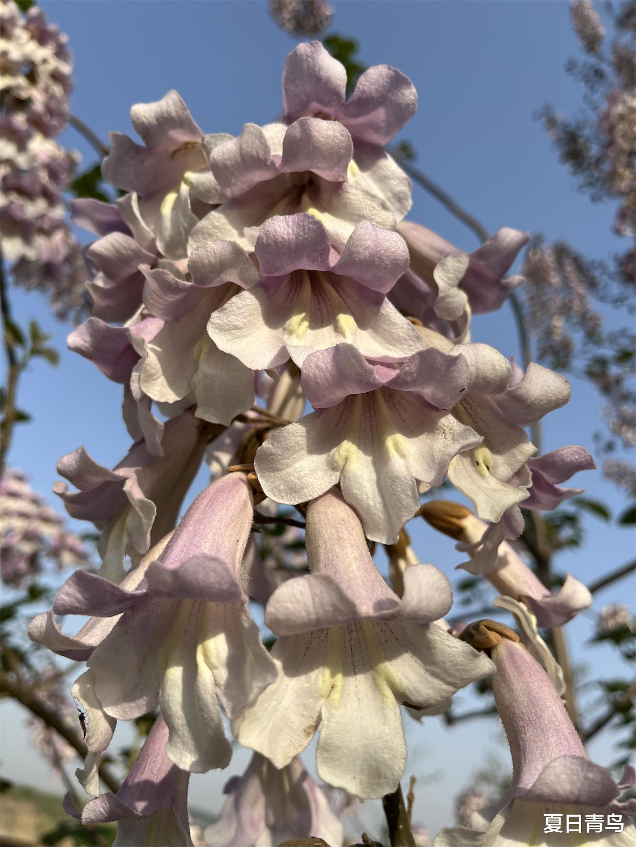 泡桐花在晴空下打开信封