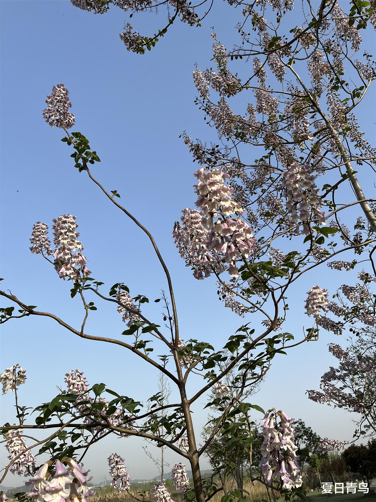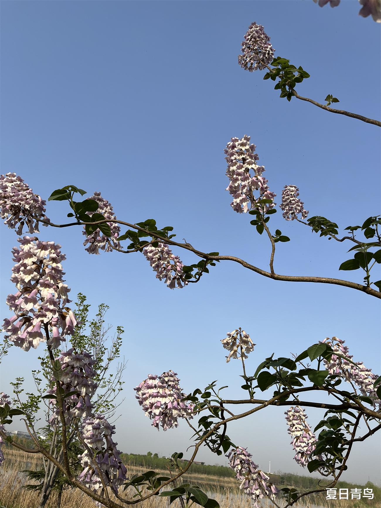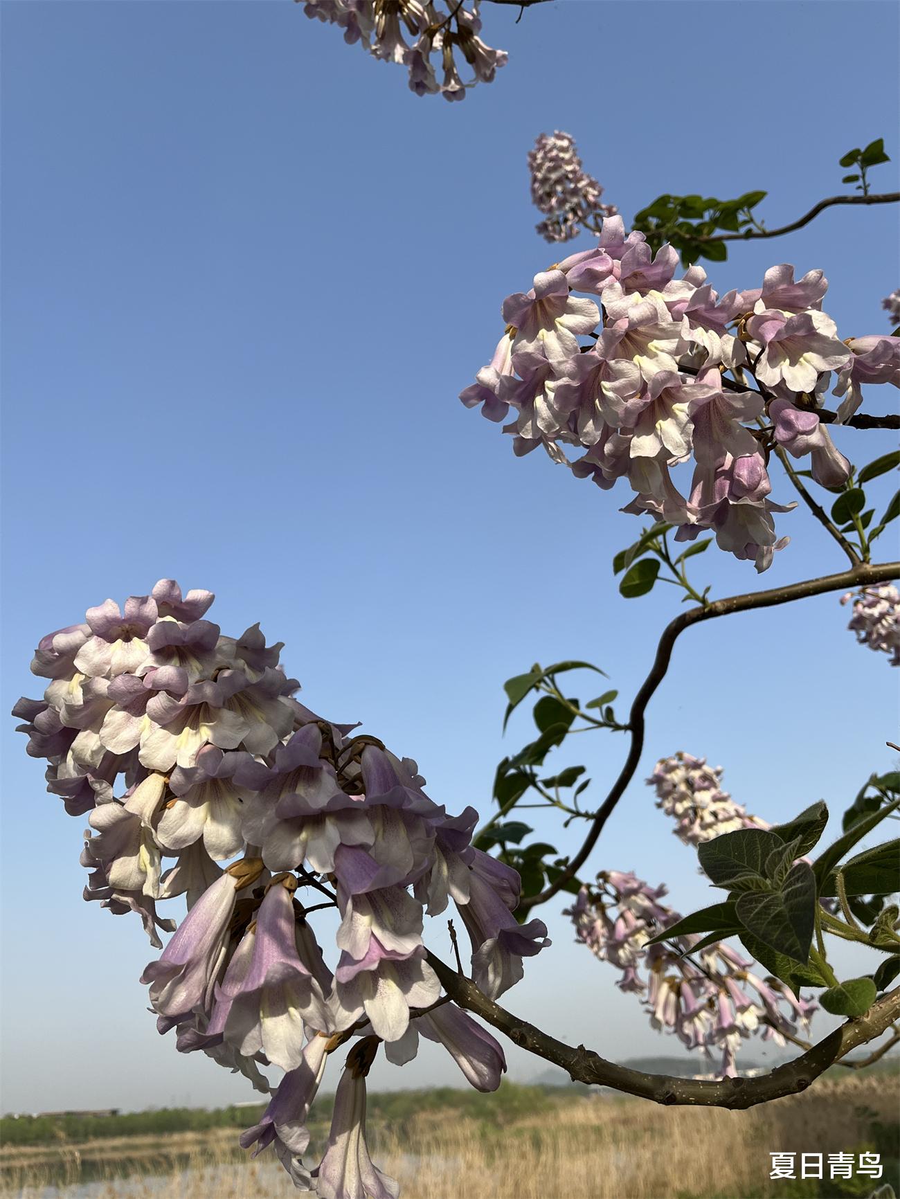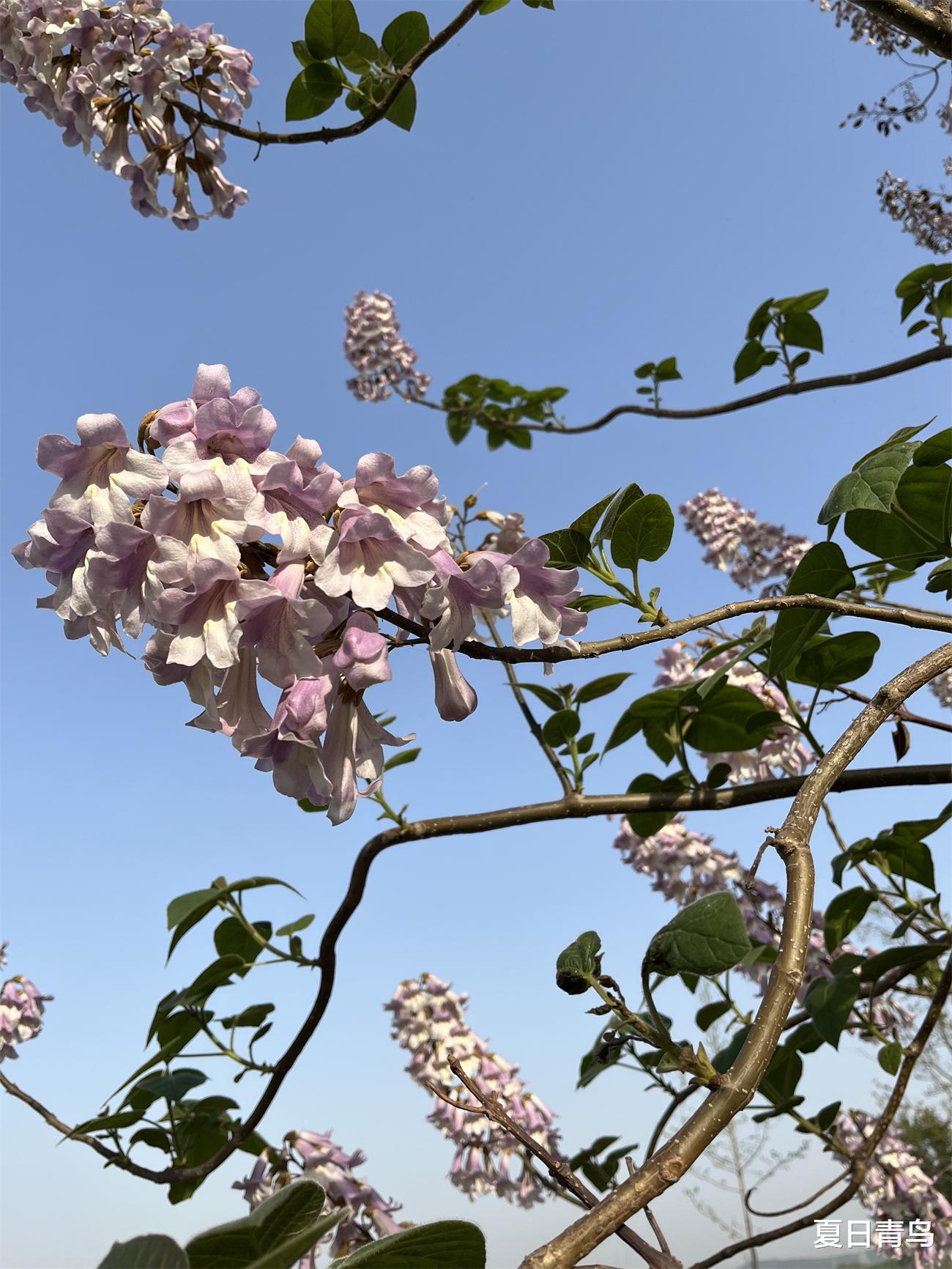 泡桐花在晴空下打开信封