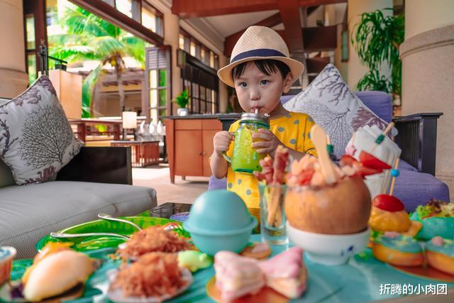 ☕️网红下午茶:下午茶不在套餐内,但是看到他家的广告,忍不住去体验了一番,简直爱了,非常夏日风,以冲浪板为主题,每一款点心都充满着大海的味道,贝壳,海螺,每款点心形状都做的精致逼真,咸甜搭配的恰到好处。套餐内竟然还隐藏了彩蛋,打开竟是孩子超喜欢的巧克力豆豆。