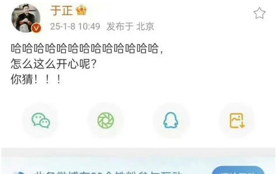 他曾发文表示自己很开心,有网友问他是不是吴谨言生了孩子,他很快就删除了这条微博,这让大家觉得他可能说中了。