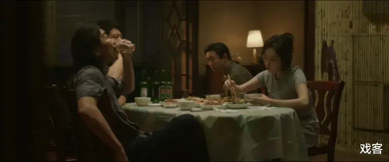 四个人的年夜饭亦充满了诡异的氛围,虽然是简单场景,却将他们之间的复杂情感和关系纠葛展现得淋漓尽致,没有比这更渗人的了。