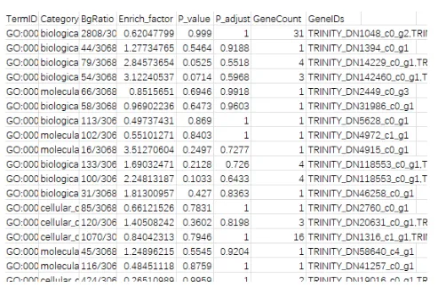 1. 根据设置的参数,准备对应的输入文件。可根据帮助文档中的输入文件说明或示例文件格式进行准备。文件要求如下所示,富集圈图需要同时上传富集结果文件及基因上下调文件: