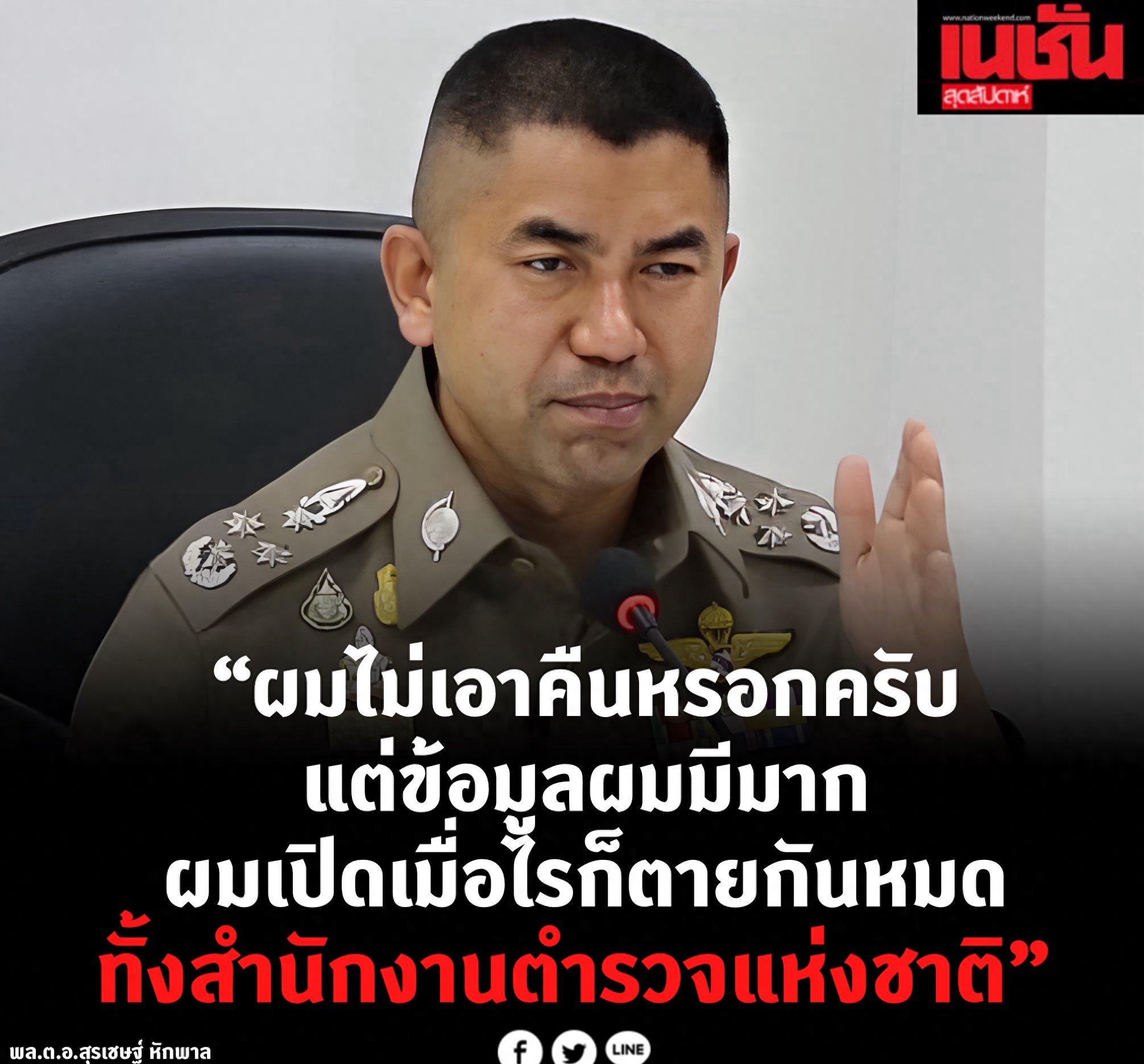 对此,记者询问称是否决定“报复”时,素拉切表示没想过,但他手中掌握的资料很多,一旦合适全部公开,警察总署将全军覆灭;无论如何,他请求不透露更多,也没想过要报复;一直以来每起案件都公正执法,但资金往来牵涉人员繁杂,贪污受贿也根本不是他的作风,更何况赌博网站人士都对他敬而远之,尽管本可以这么做,但他依然坚守警察机构的底线。