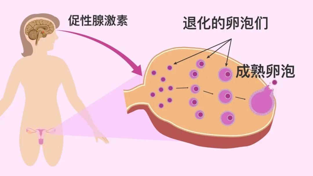 女性在月经初期,卵巢会出现若干不同数量的基础卵泡,在自然状态下,只有一个或两个卵泡逐渐发育成成熟卵泡,称主卵泡(优势卵泡),然后排卵。