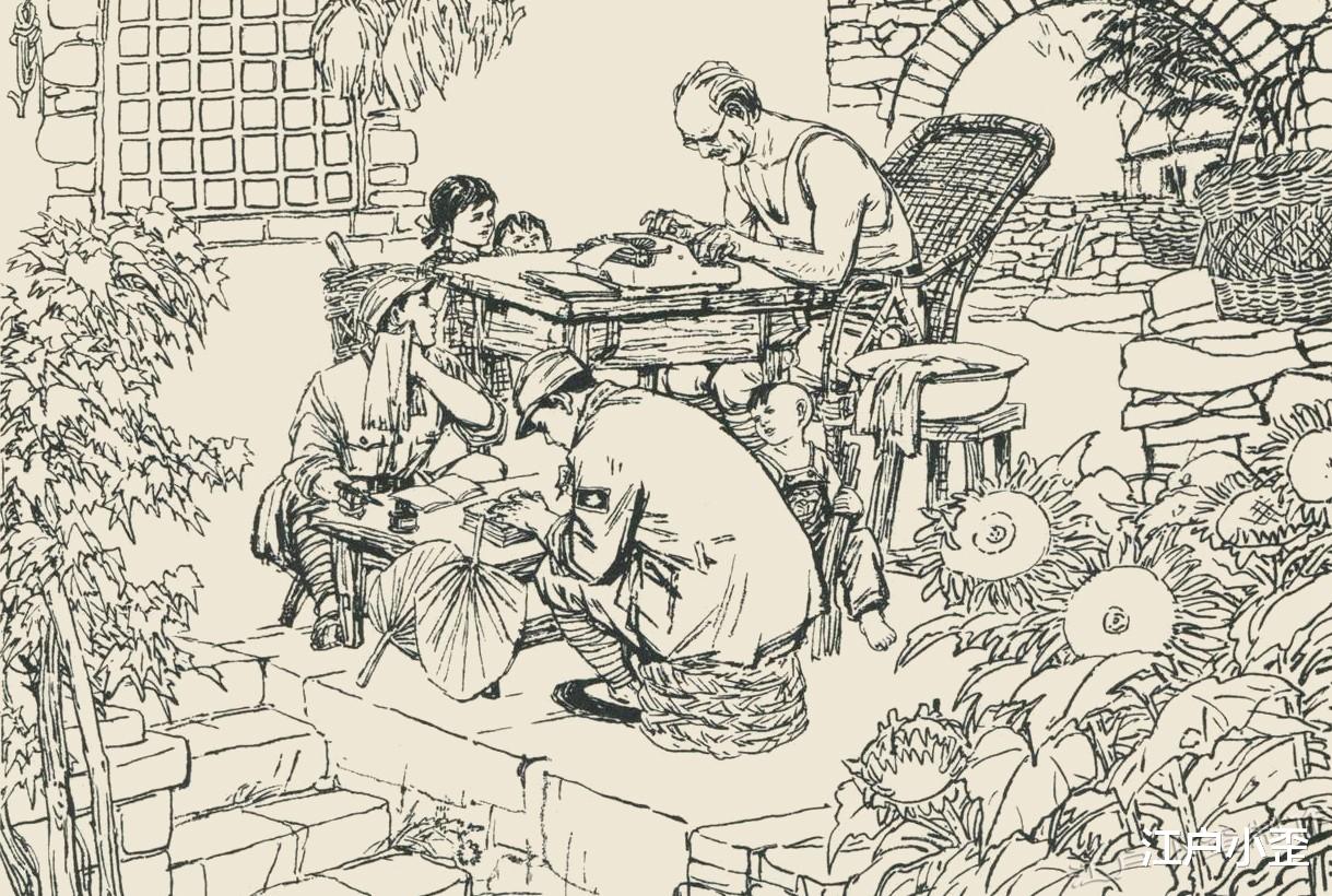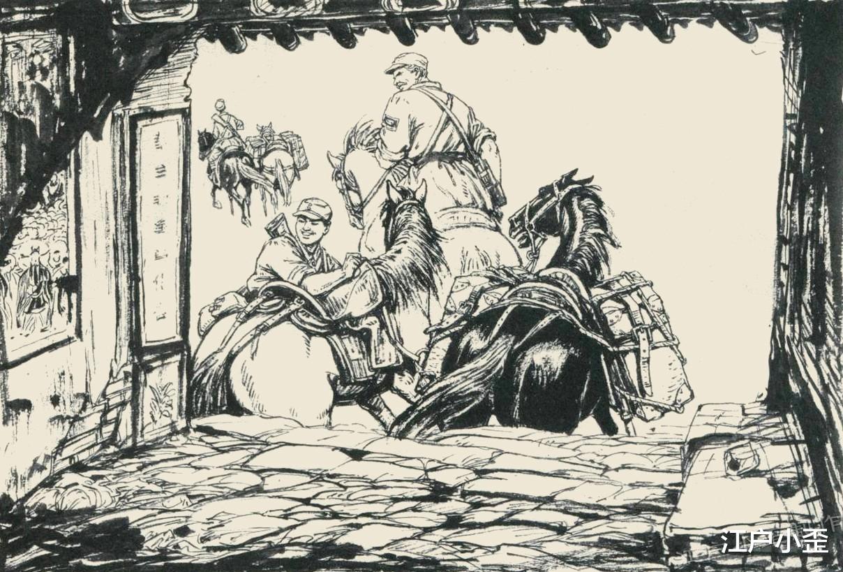 像这样从老乡二楼的窗子看白大夫出发的构图,很巧妙,暗合了摄影中的天然框架法。读者的视角一下子就聚焦到了马屁股……不,白大夫的身上。