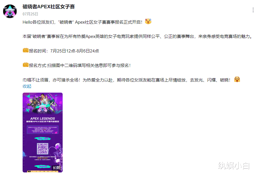 届时,破晓者Apex社区女子赛会在各大直播平台的Apex赛事官方直播间进行同步直播,各位观众千万不要错过!