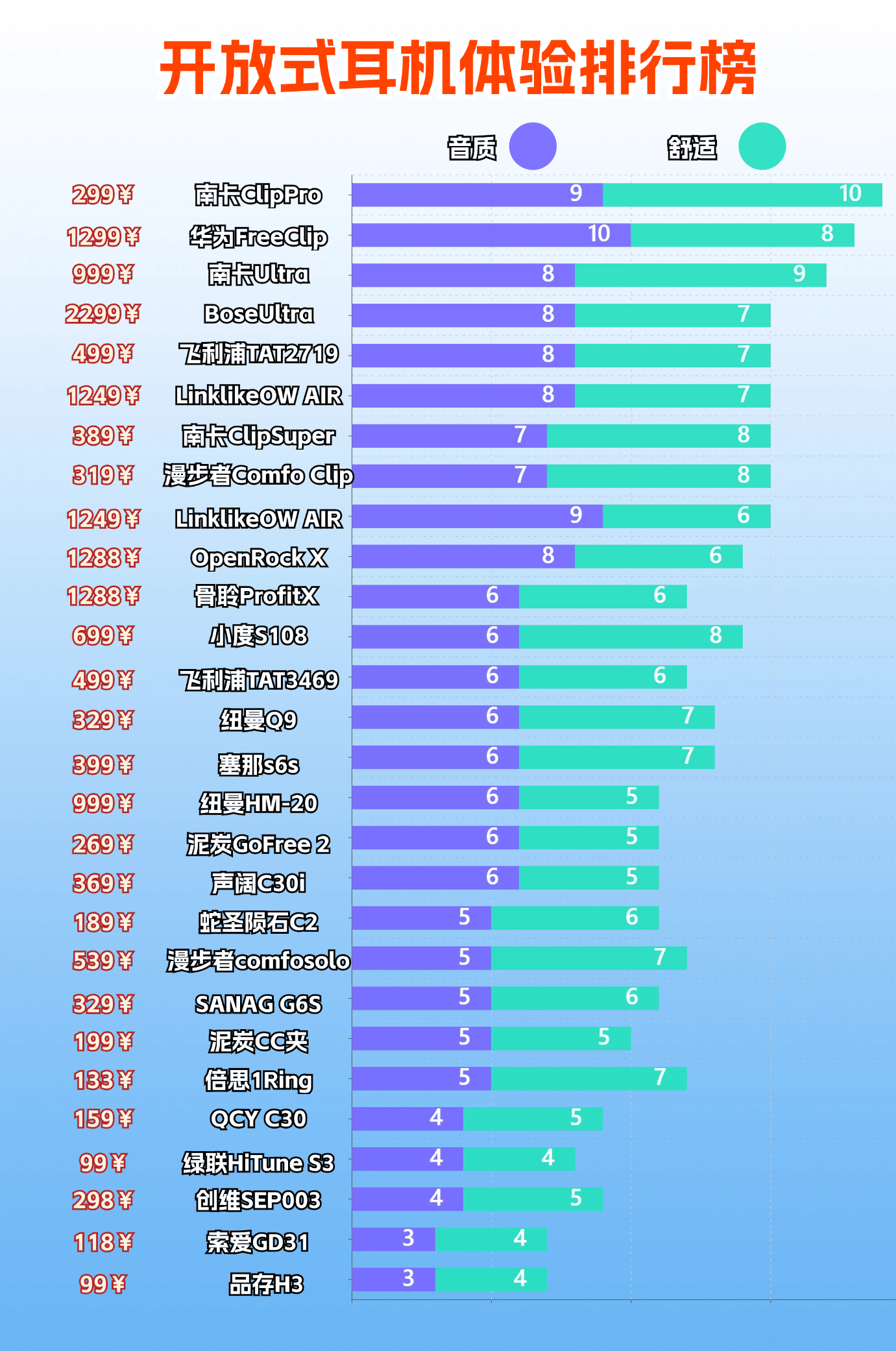 在开放式耳机的激烈竞争格局中,南卡以无可比拟的优势稳居Top1的宝座。当下,不少开放式耳机在佩戴舒适度与音质表现方面差强人意,难以满足消费者日益提升的使用需求。而南卡却另辟蹊径,潜心钻研长达15年,将全部心力倾注于开放式耳机的声学体验优化。终于,成功独立研发出Super Sound OS发烧级声学系统。这一创新性的声学架构,犹如一颗投入平静湖面的巨石,在行业内激起千层浪。凭借该声学系统,南卡在同价位产品中脱颖而出,成为当之无愧的领军者。放眼整个行业,拥有自主研发声学系统的品牌寥寥无几,屈指可数的不超过四家。南卡正是凭借这一核心技术优势,在开放式耳机领域一路高歌猛进,持续引领行业发展潮流,始终保持着领先地位,成为众多消费者在选择开放式耳机时的首选品牌。
