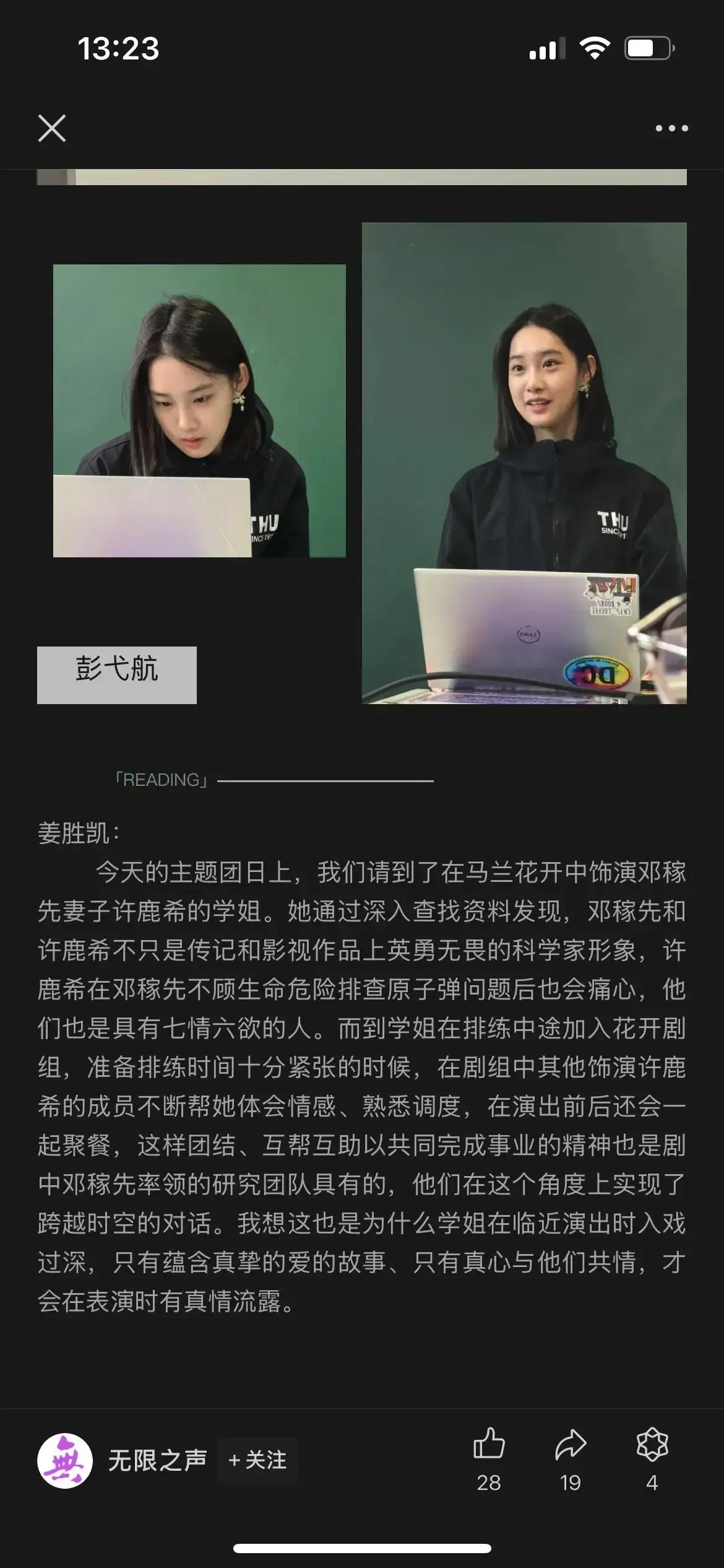 在学校学习期间,彭弋航还曾经出演过话剧《马兰开花》,她在里面饰演的是邓稼先先生的妻子,靠着传神的演绎,征服了无数学子。