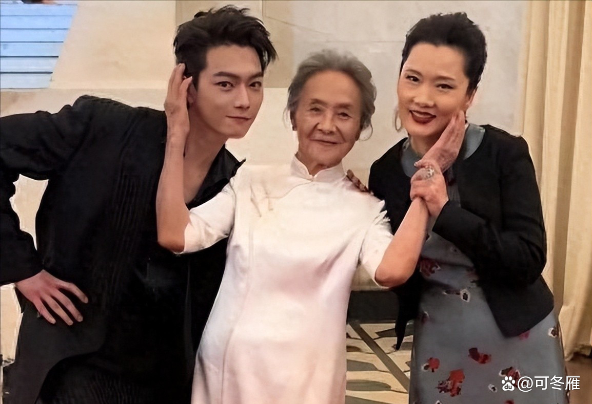 这三个人在镜头之外相处得非常融洽,从照片里可以看到其中两人亲密地围绕着“吴奶奶”。她伸出双手,轻轻抚摸着两人的脸颊,为了让“吴奶奶”能够更容易触碰到,他们俩都微微弯下了身子。从吴奶奶的眼神里可以明显感受到,她对这两位年轻人的喜爱之情溢于言表。