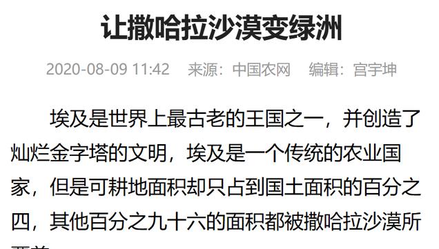 治理沙漠,扩大宜居面积是埃及解决人口压力和资源短缺问题的关键所在,中国多年来在治理沙漠方面取得的成果,对埃及来说是个极好的参考。