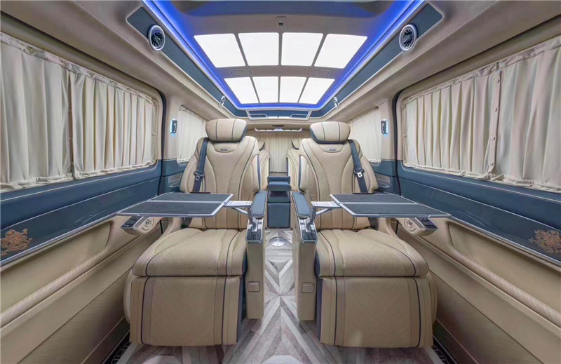 奔驰v级的MPV车型共有3款车型,分别是奔驰V260领航版,奔驰V260尊贵版以及奔驰V260L长轴距豪华版,整车的外观都采用了奔驰家族最新的设计语言,整体现出时尚与运动的气质,原车型官方指导价在47.8万-62.98万。今天为大家介绍的这款车子是奔驰v260l长轴距豪华版改装的内饰,融入了迈巴赫的元素,一起来看看它的表现吧。