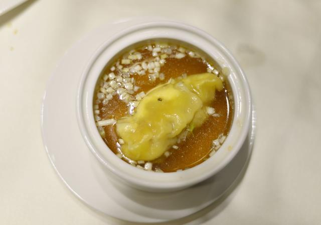 如图:瑶柱饺子25块钱一个,菜上来时我有点惊讶,以为是蒸笼里面的饺子,没想到是一碗汤,但是这碗汤25块有点小贵