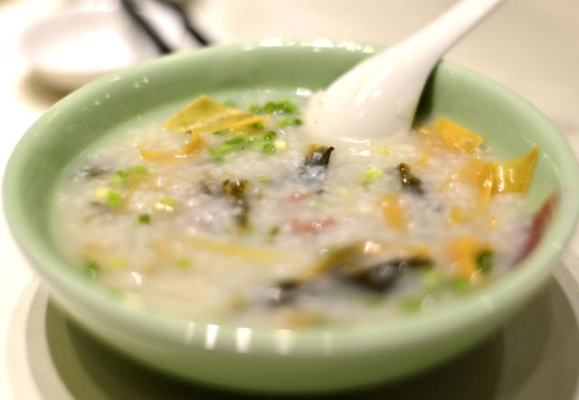 如图:15块钱一碗的菜干肉骨粥,说实话并不好吃,很普通