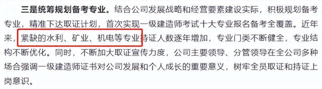 多家国企紧缺相应专业的一建证书,说明持有该证书的人才在市场上供不应求,具备更强的竞争力。