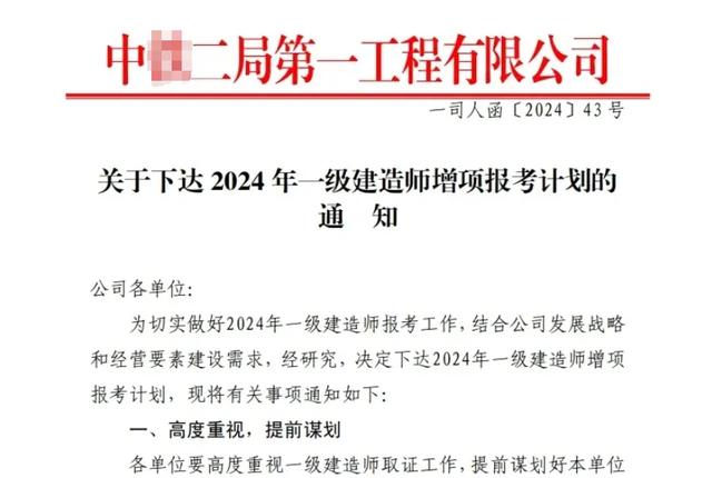 近日,多家国企发文,紧缺相应专业的一建证书,大力鼓励员工考一建证书、考增项。