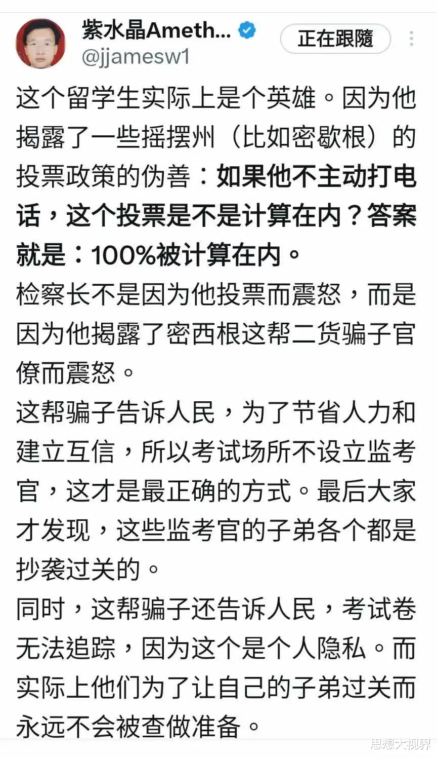 当然,也有哈里斯的支持者发视频声称,哪怕联署后后拿了100万美元,也去投哈里斯,就是骗你马斯克,这恰恰证明,马斯克没有花钱买票。马斯克此举其实正吻合美国传统选举不验身份的由来。