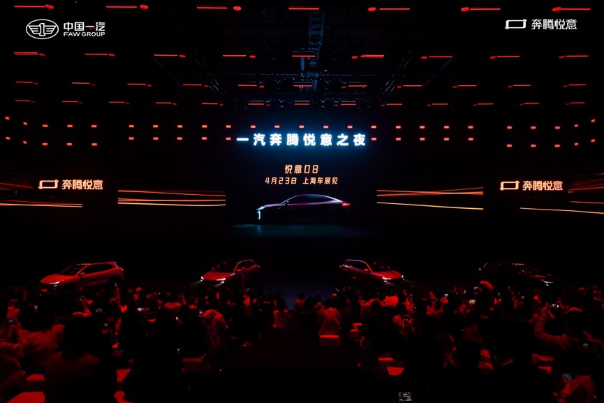 产品为用户而新。卓越的技术最终要通过优秀的产品来呈现。未来2年悦意将投放6款产品,构建E/P/R三个产品矩阵,涵盖A0~B级。其中, E系产品为城市出行场景用户打造全球趣悦精品车,带来“多用10%、节能10%和宽敞10%的3大价值感受。P系产品是悦意的超级电混产品矩阵,为家庭多用途用户打造超能舒享家用车,可实现超长、超远、超省、超劲和超快的“2的五次方”体验;R系产品则作为科技旗舰,定位为下一代全球风尚智能车。作为一汽奔腾悦意之夜的神秘彩蛋,R系列首款车型悦意08通过视频首次惊艳亮相,并计划于4月的上海车展官宣更多信息。