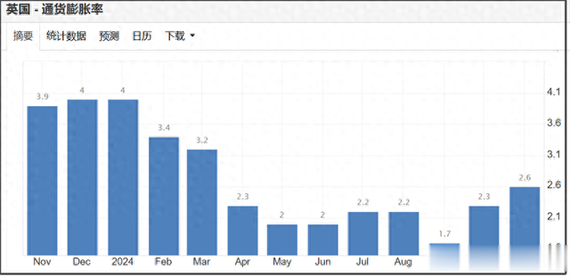 包括英国过去3年经济最大问题的通胀,在一波回落到2%附近后,最近两个月又有较大幅度反弹,连续两个月从1.7%,反弹回2.6%;